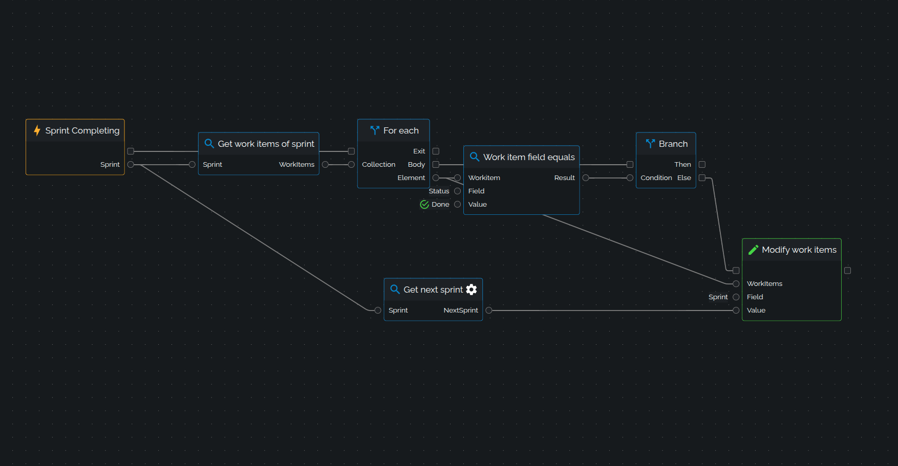 Wanneer een gebruiker een sprint wil voltooien, wordt eerst een automation uitgevoerd voordat de sprint daadwerkelijk wordt afgerond.
