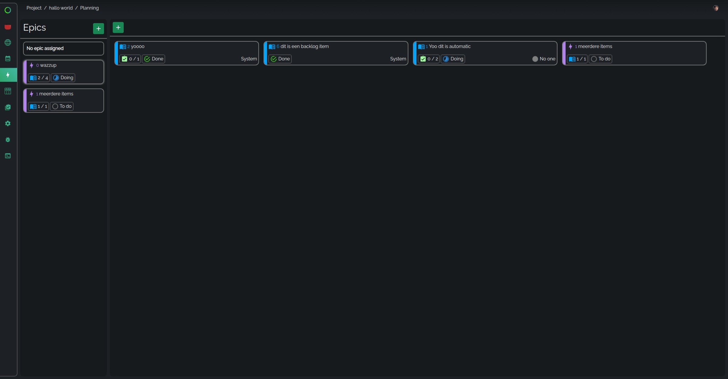 Epics zijn bedoeld voor categorieën. Ze geven overzicht in welk deel van je project een bepaald Work Item valt en hoe de voortgang daarvan is.